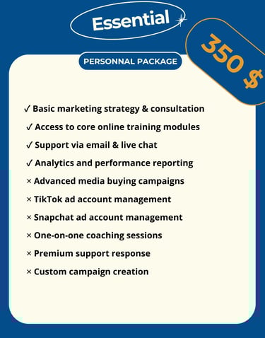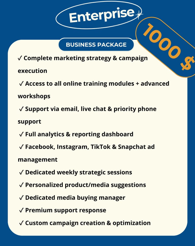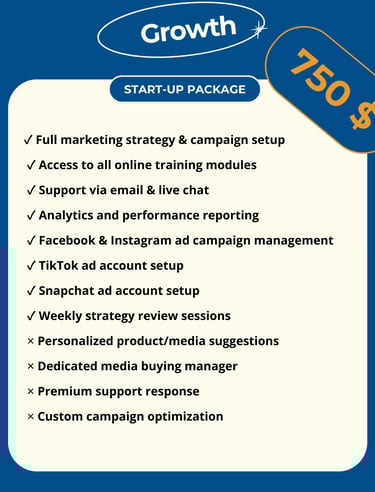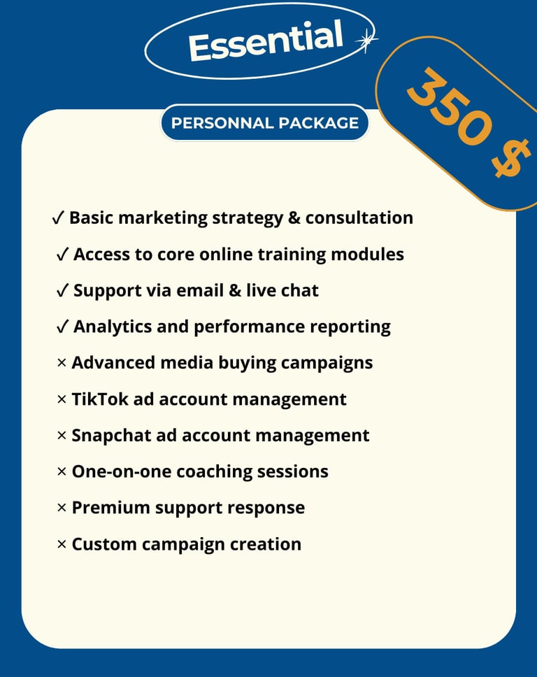 Our service fees are designed to fit every business. Choose a plan that matches your goals, from essential support to full marketing and media management, and get expert guidance to grow your brand and maximize results.